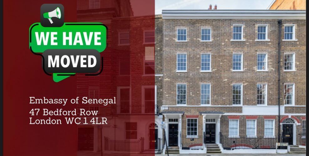 The Senegalese Embassy in London is moving to a new location in Holborn Central London and will open to the public on 01/02/2024.