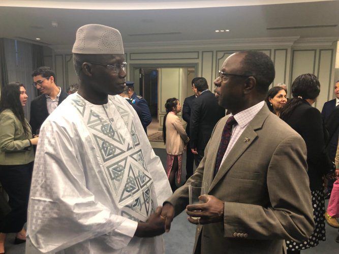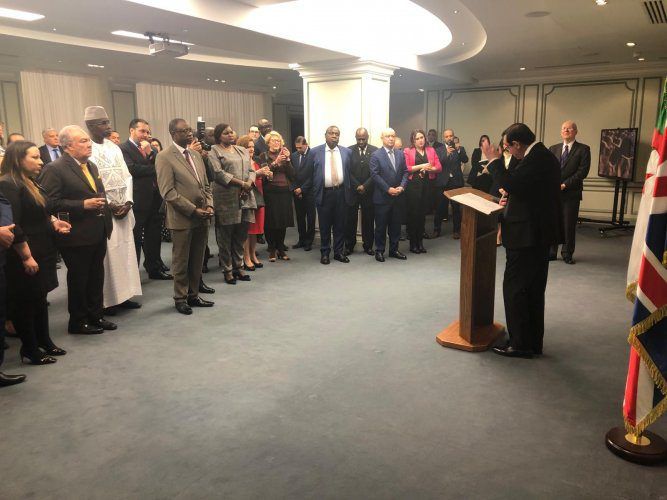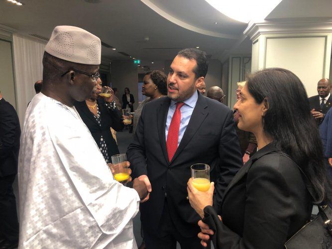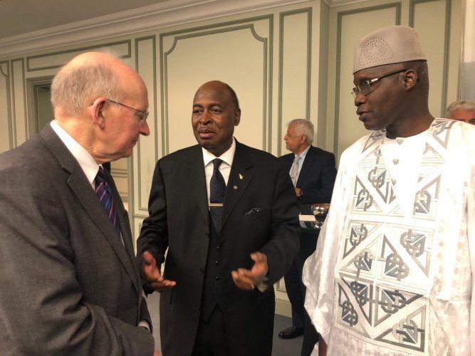 En images, les ambassadeurs Cheikh WADE du Sénégal et Nourredine YAZID d’Algérie ainsi que d’autres membres éminents du corps diplomatique comme le Marshall William Alistair Harrison à l’Ambassade d’Algérie au 1-3 Riding House St, London.